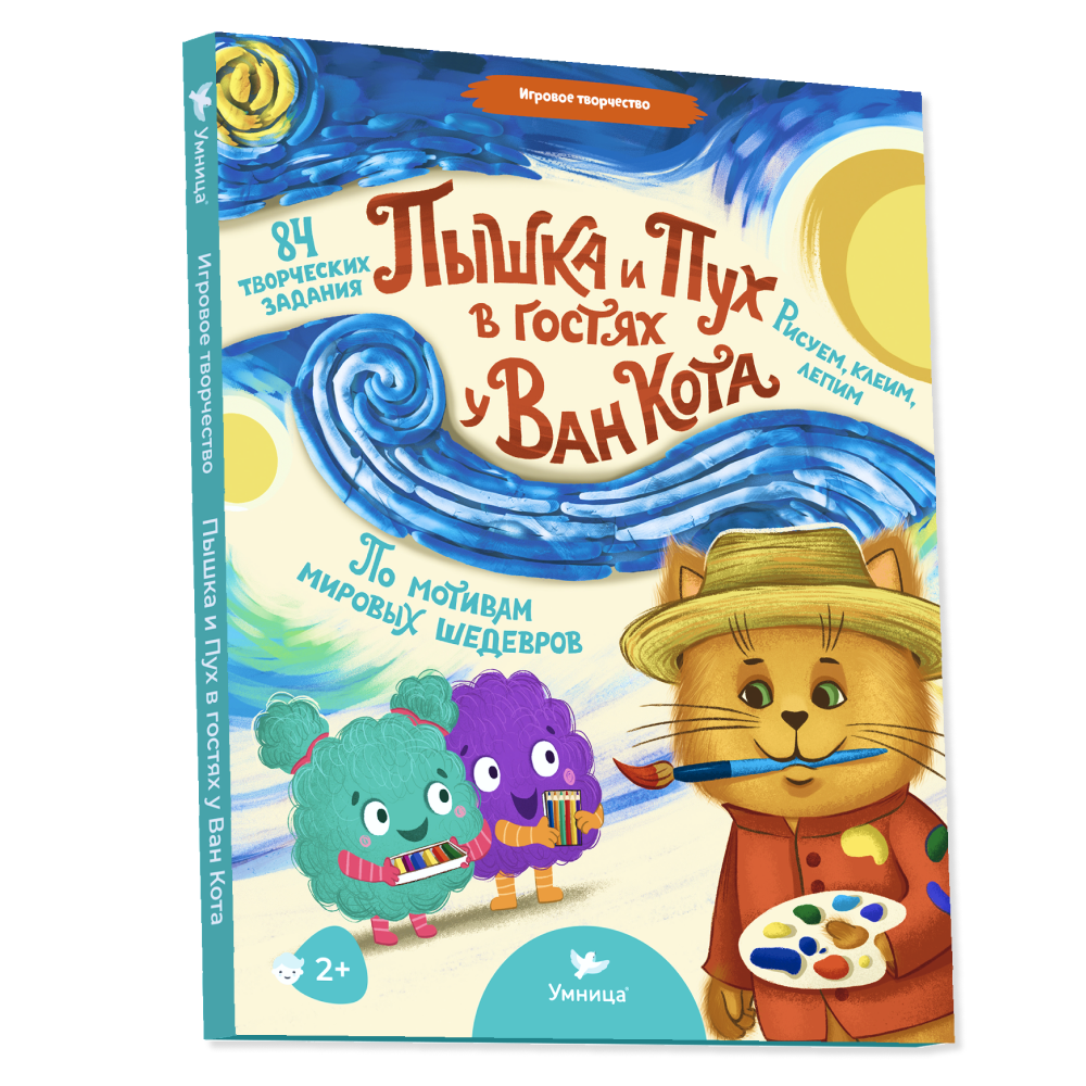 «Пышка и Пух в гостях у Ван Кота» – это набор арт-листов с творческими заданиями для малышей от 2 до 6 лет. Внутри папки – готовые шаблоны, с которыми ребёнок сможет развивать творческие и изобразительные навыки, а также в простой форме познакомиться с шедеврами мирового искусства.